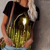 Damen Sommer Freizeit Rundhals 3D-Druck Mondlicht Katze Muster Atmungsaktiv O-Ausschnitt Kurzarm Übergroßes T-Shirt Sommer