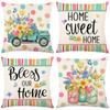 4 Stück Blumen Überwurf Kissenbezüge Quadratisch Leinen Taillenschutz Kissenbezug Bett Sofa Kissenbezüge Heimdekor Kissenbezüge 45x45CM