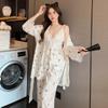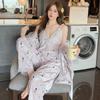 3-teiliges Pyjama-Set Hosenträger Robe Feminine Spitze Pyjama Herbst und Winter Samt Hausanzug Pyjama Freizeitkleidung