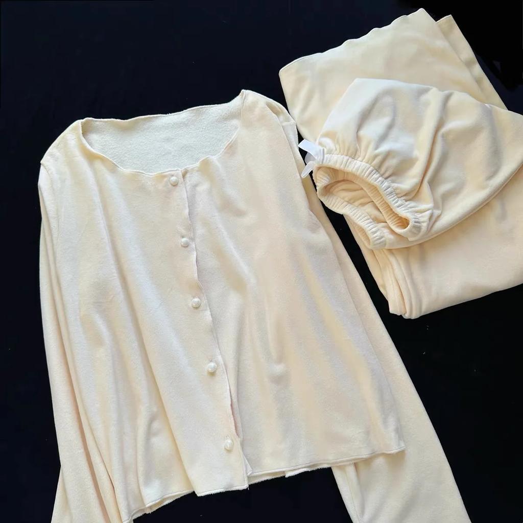 Süßer Prinzessinnenstil 3-teiliges Pyjama-Set Island-Velours Nachtwäsche Haus-Lounge-Bekleidung Herbst Winter Doppelseitiger Velours Hosenanzug