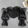 Damen Pendler Temperament Puffärmel Tailliert Weiß Einfarbig Ein Schulter Bluse Hemd