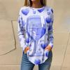 T-Shirts für Damen, lässig, Rundhalsausschnitt, Langarmshirts, Valentinstag-Druck, Top, Pullover