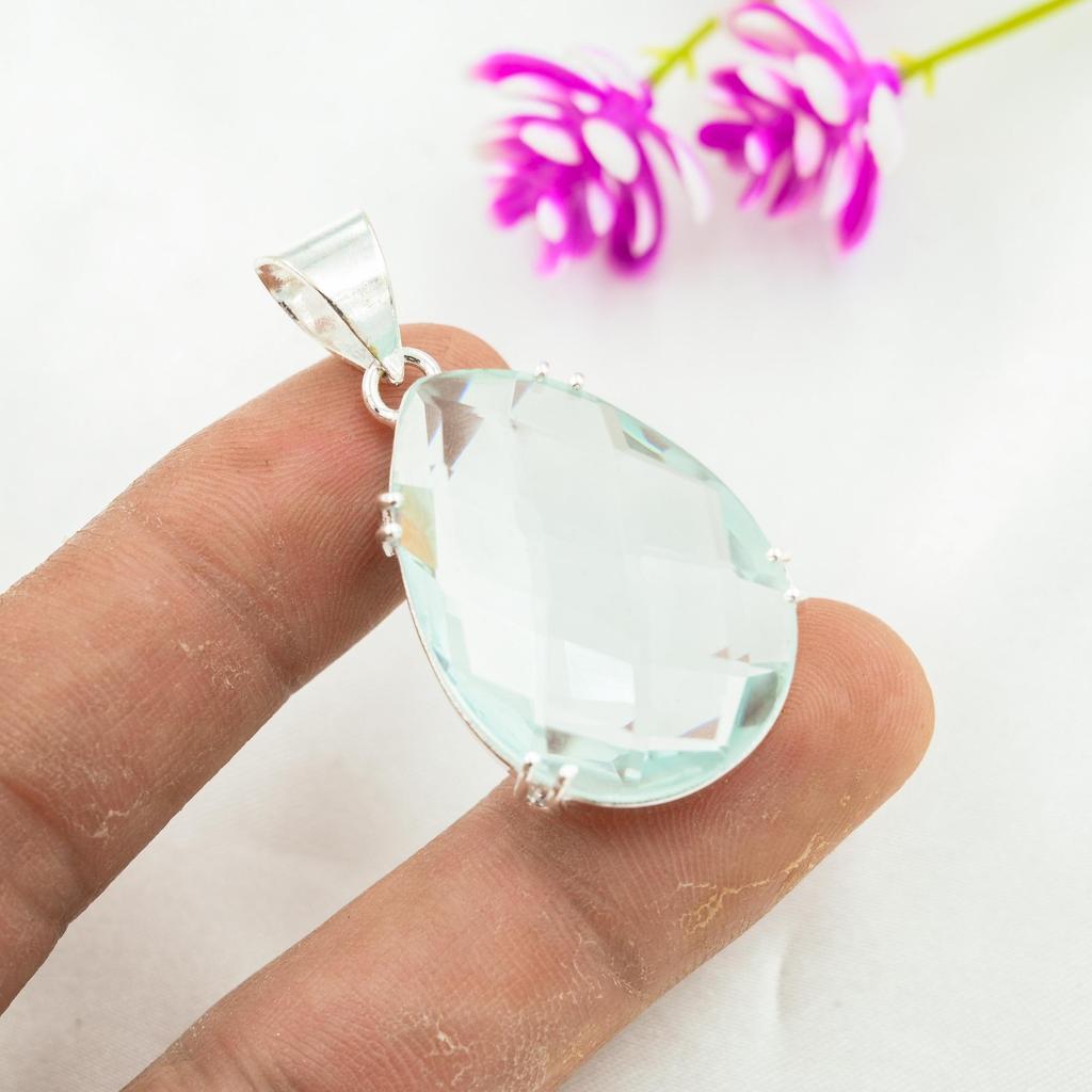 Aqua Apatit Anhänger, 925 Sterling Silber Anhänger, handgemachter Edelstein Schmuck, Geschenke für Frau, brandneuer Anhänger