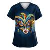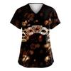 Damen Karneval Bedruckte Uniform Arbeitsuniform V-Ausschnitt Tasche Schützende Uniform