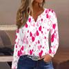 Damenmode Lässig Valentinstag Bedruckt V-Ausschnitt Langarm Knopfleiste T-Shirt Top
