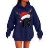 Damenmode Lässig Langarm Bedruckt Rundhals Kapuzenpullover Pullover Top Mit Taschen