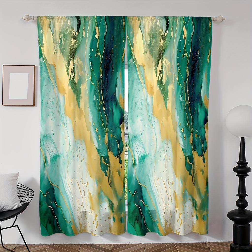 2-teiliges Set Elegante Marmoroptik Frau Digitaldruck Vorhänge Stangentasche für Wohnzimmer Schlafzimmer Fenster Klassische Heimdekoration
