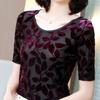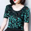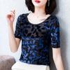 Rundhalsausschnitt, Samt, Mittellange Ärmel, Schlankheits-T-Shirt im Western-Stil, Damen-Tanzkleidung für Frühling und Sommer, Übergröße