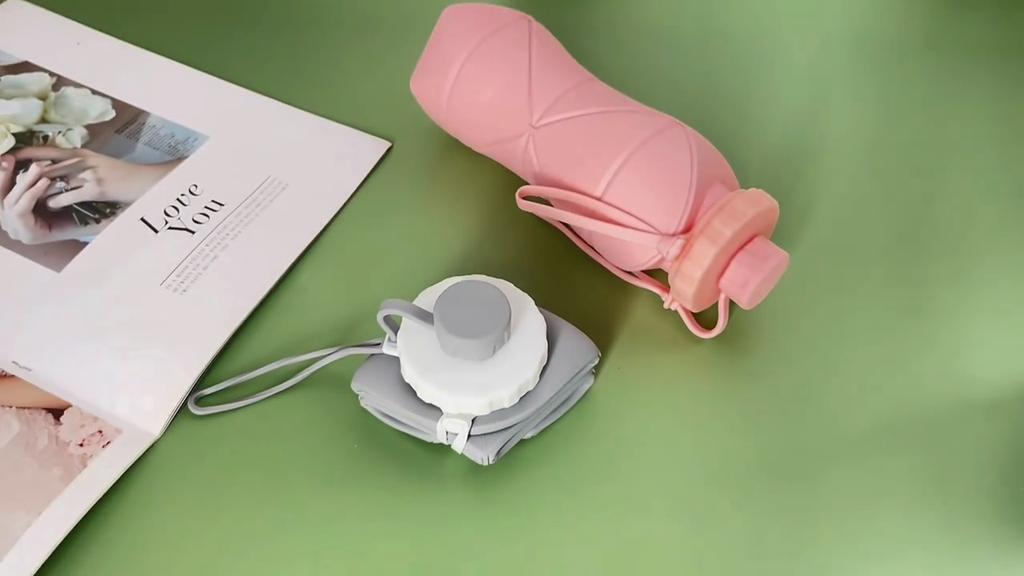 600 ml Silikon-Faltflasche für Erwachsene, tragbar, wiederverwendbar, Plastikbecher, für Outdoor-Reisen, Fitnessstudio, Wasserflasche, motivierende Trinkflasche