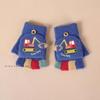 Herbst- und Winter-Kinderhandschuhe Cartoon Bagger Muster Bunte Halbhand Strickhandschuhe Warm und Kältefest Plüsch Klapphandschuhe