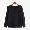 Übergröße Damen Temperament Puppenkragen Langarm Locker Gestrickte Strickjacke