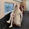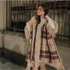 Original Kapuze Pelz Kragen Scottish Plaid Cape Frauen Gestrickte Woll Jacke 0860 #