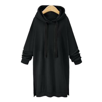 Damen-Kapuzenpulloverkleid mit Schlitz am Saum und Kordelzug, locker, einfarbig, mit großer Tasche, Kapuzenpullover, mittellanges Oberteil, Pendeln, Dating, Sport-Kapuzenpullover