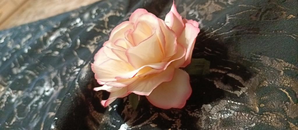 Sehr süße Blume, genau wie auf dem Bild. Krokodil- und Nadelverschluss.
