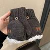 Herren Winter Halbfinger Klapphandschuhe für Studenten zum Warmhalten, plus Samt und verdickt zum Schreiben, Fingerlos, Halbfreiliegend, Radfahren und Radfahren