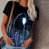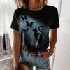 Sommer 3D-gedruckte T-Shirts Freizeit Mondlicht Kätzchen Damen Pendler Elegant V-Ausschnitt Kurzarm T-Shirts Damen