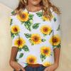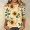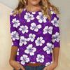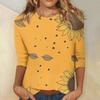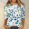 Damenmode Lässiges Rundhals-T-Shirt mit 3/4-Ärmeln und lockerem Aufdruck