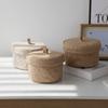 Korb-Blumentopf-Boxen aus Seegras, Aufbewahrungskörbe für Kleinigkeiten mit Deckel, Weben, Snack-Aufbewahrungsbox, Jute, Kleiderschrank, Tisch, runde Geschenkbox