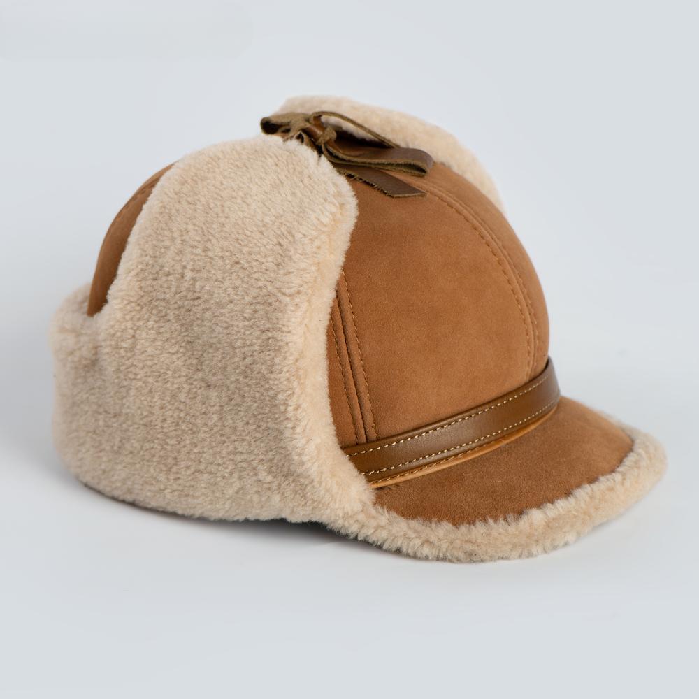 High Quality Winter Leather Hat Men Fur Warm Thick Earflaps Bomber Hats Men's Baseball Cap Russian Hat