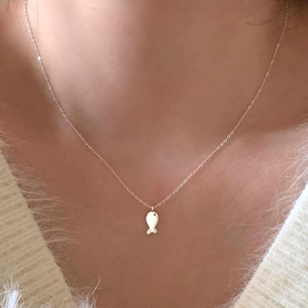 ANENJERY Geometrische Halskette mit glattem kleinem Fisch-Anhänger für Frauen, süß, vielseitig, High-End, vielseitiges Schlüsselbein-Ketten-Schmuckgeschenk