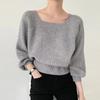 Koreanischer Temperament Quadratischer Ausschnitt Blasenlaternenärmel Top Kurzer Lockerer Strickpullover für Damen