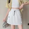 Grauer Workwear-Halbrock für Damen im Sommer Dünnes Design mit Kordelzug Hohe Taille A-Linie Schlankmachend Schnelltrocknend Kurzer Rock Hose Röcke