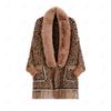 Autumn and Winter Imitation Mink Collar Pocket Sleeves Leopard Print Shawl Cape Fringed Scarf Jacket Women's Knitted Sweater