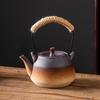 Kung-Fu-Teeservice aus Keramik: Schwarze Teekanne mit Seitengriff und Holzkohleofen für offenes Feuer.