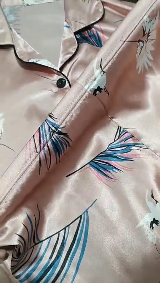 Loungewear für Damen im europäischen und amerikanischen Stil für Frühling und Herbst, bequemes Satin-Pyjama-Set, lässige 2-teilige bedruckte Homewear