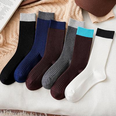 Herren Farblich Passende Doppelnaht-Socken Verdickte Warme Mid-Tube Baumwollsocken Japanische Trendige Herrensocken Zhuji