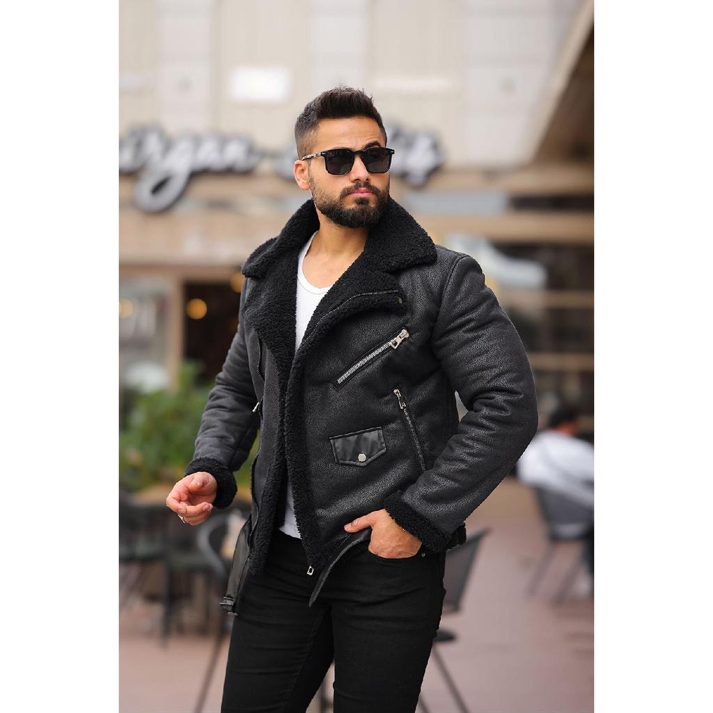 Laminated Leather Double-breasted Coat With Complete Fur Inside