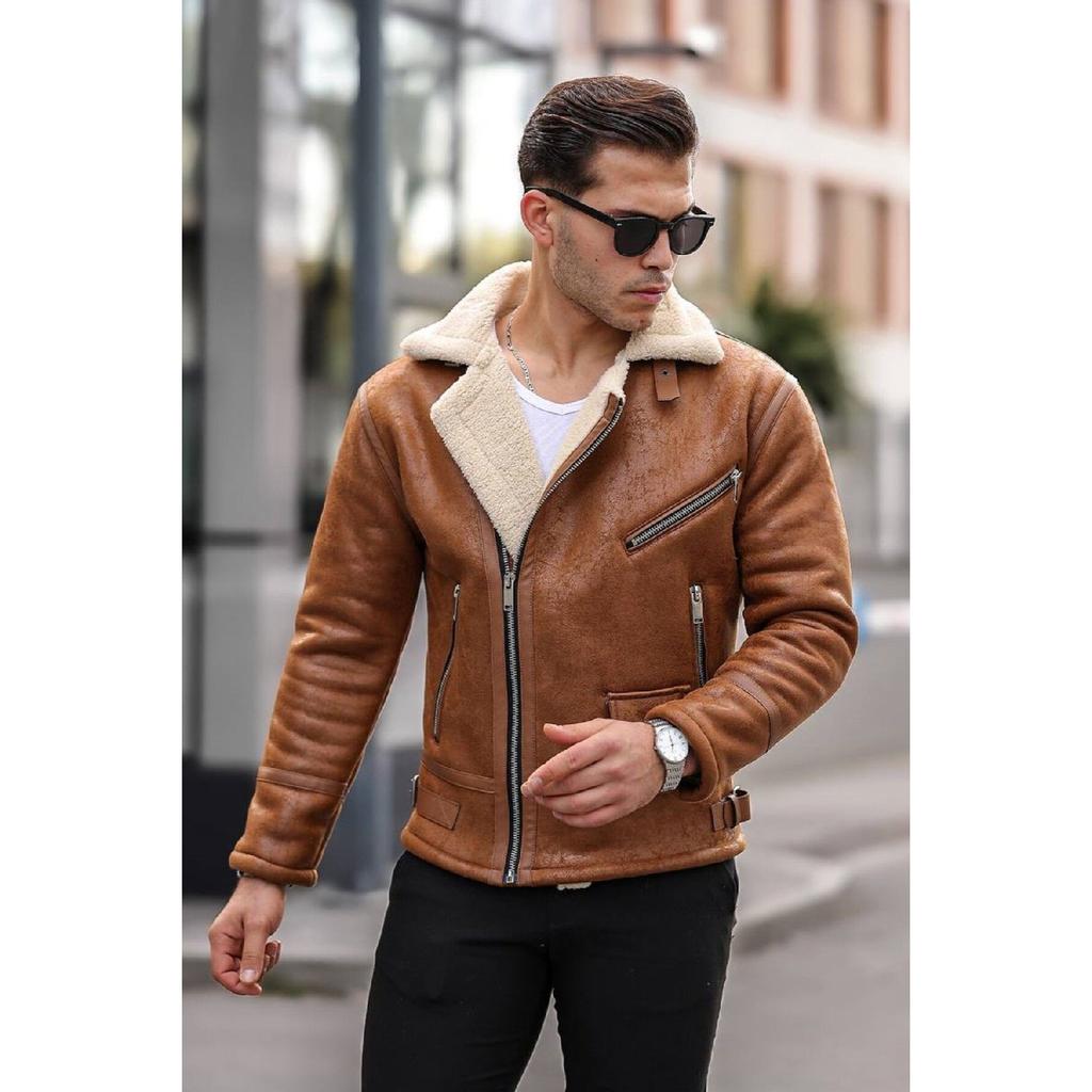 Men's Tan Color Napa Leather Cross Model Coat