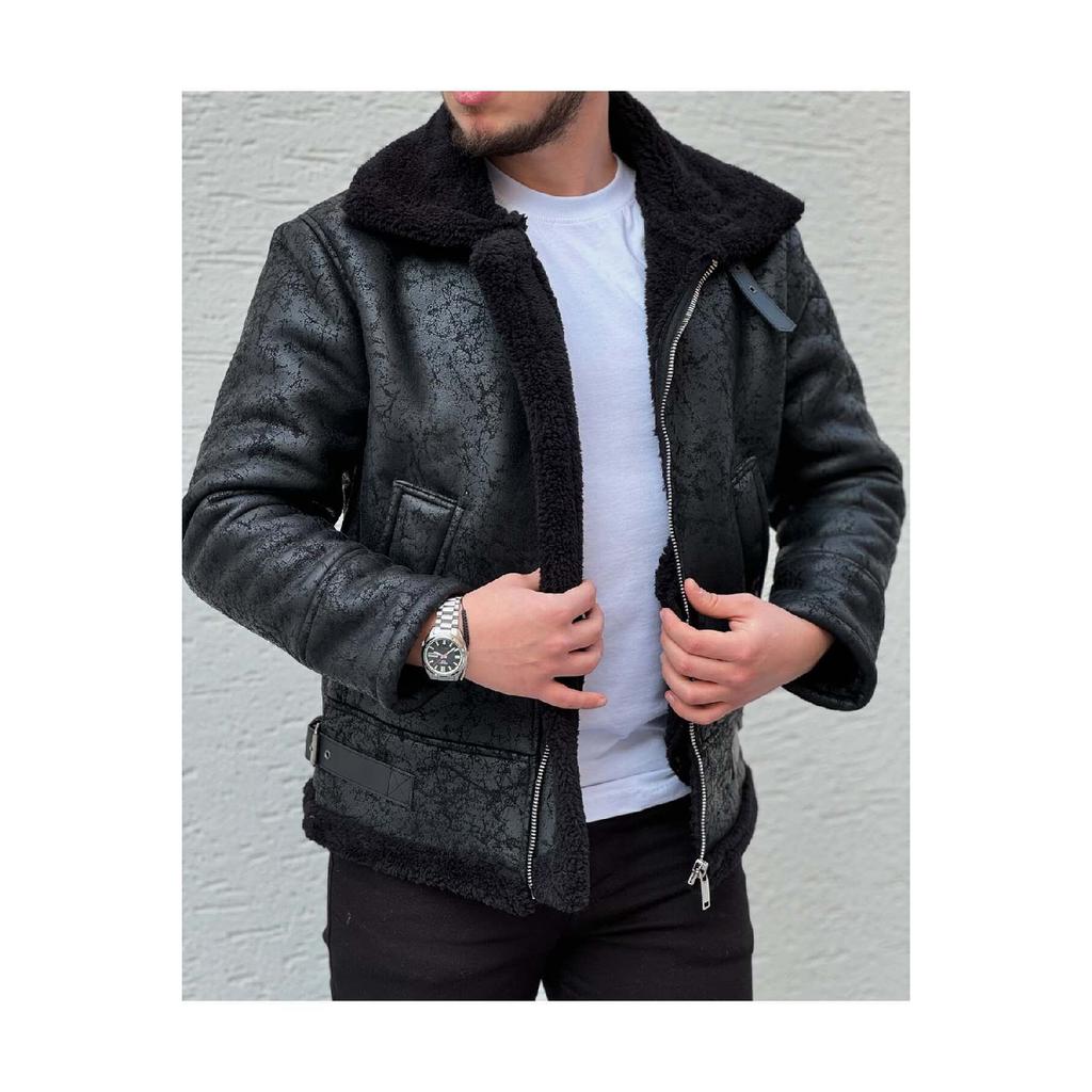 Men's Black Full Shearling Napa Leather Coat