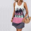 Damen Urlaubs Palmen Print Ärmellos Rundhalskleid Locker Weich und Bequem Übergröße Kleid