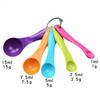 Fünfteiliges Messlöffelset aus PP-Kunststoff mit Waage zum Backen, Salz und Milchpulver – unverzichtbare Küchenhelfer.