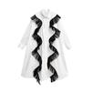 Xitao Patchwork Netz Einfarbig Einreiher Hemdkragen Kleid GMM1184