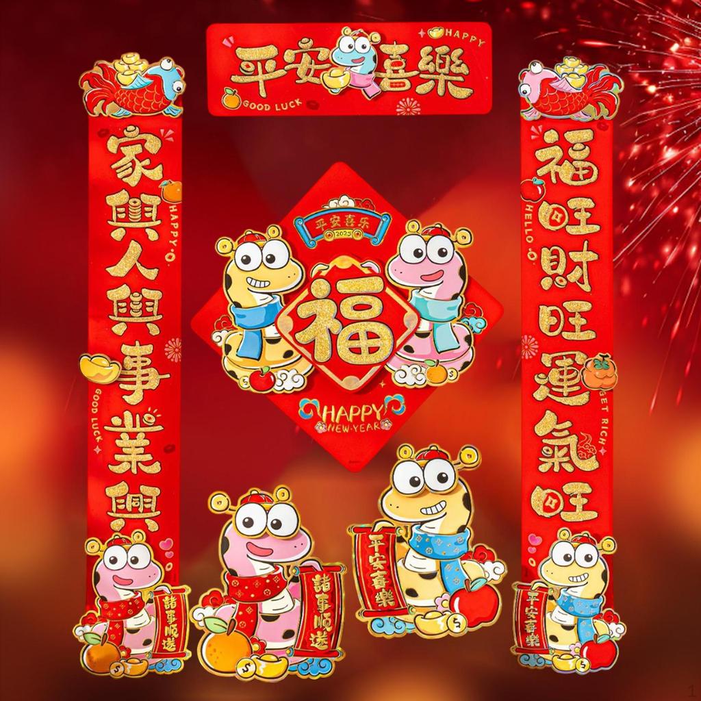 - 【Paket enthält】: Inklusive 1 Paar chinesischer Neujahrsverse mit einem Banner, 1 FU-Aufkleber und 1 Paar Türsticker, einfach zu verwenden