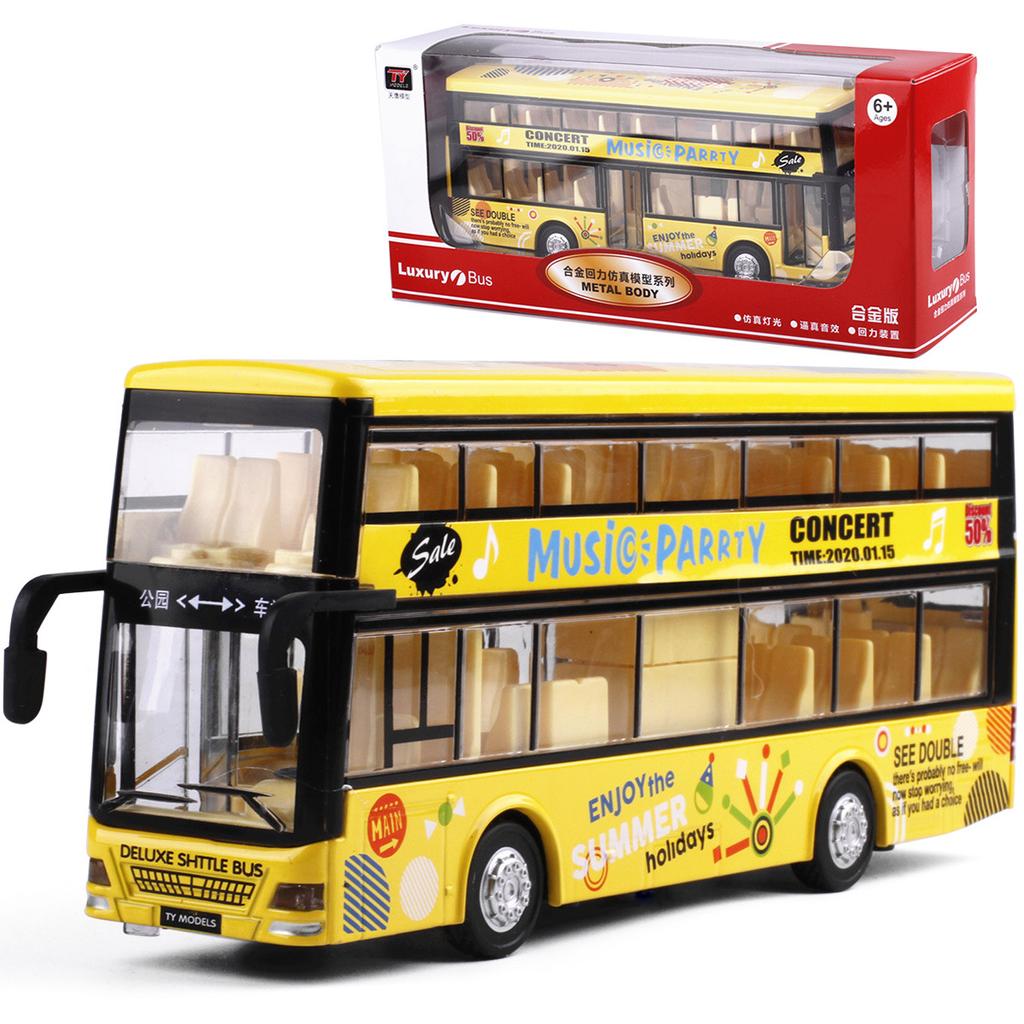 Doppeldeckerbus Legierung Automodell kann die Tür öffnen, um den Ton und das Licht zu starten Kinderspielzeugauto B299