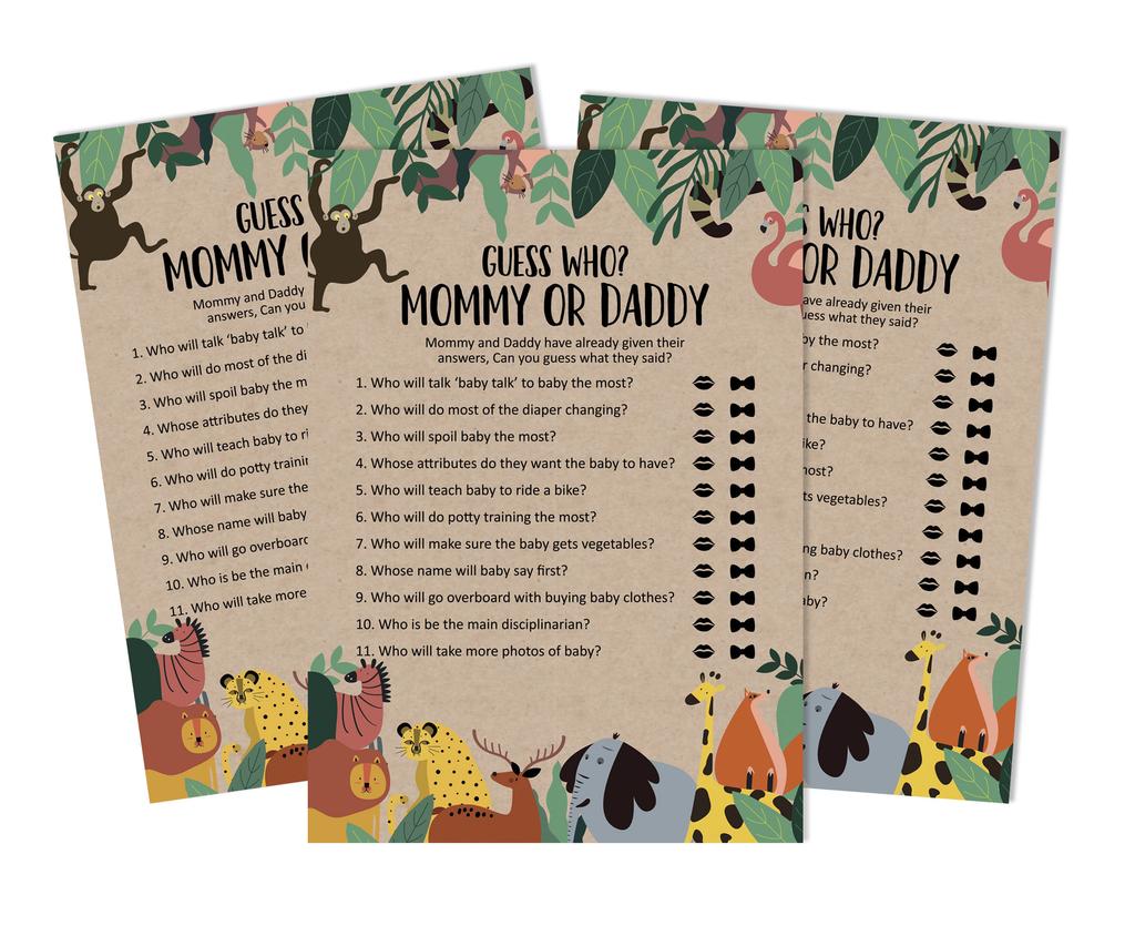 Inkdotpot Mommy Or Daddy Who Said it Game Gender Neutral Greenery & Animals Set of 50 Fun Baby Shower Game Rustic Kraft Party Supply