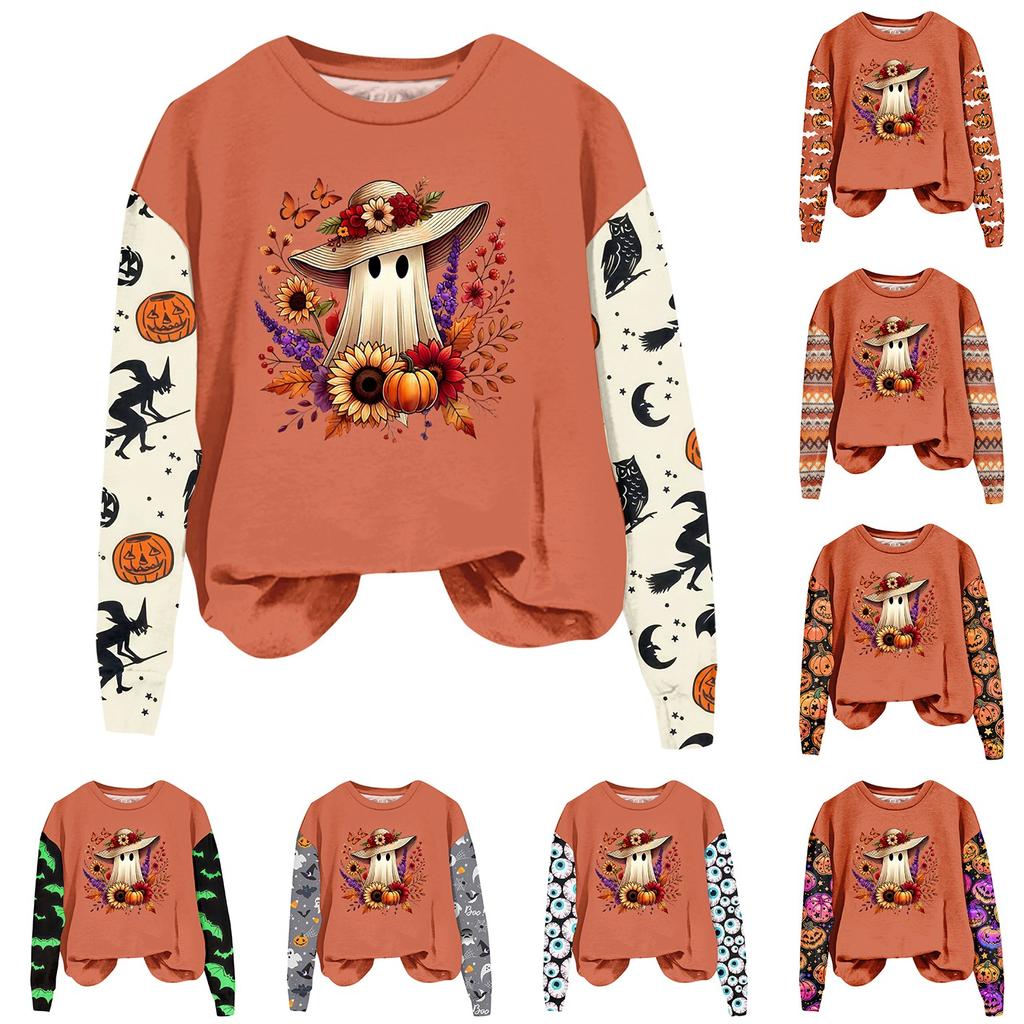 Frauen Kleidung Herbst Winter Halloween Rundhals Langarm Große Lose Plüsch Verdickt Pullover Top