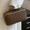 Karierte Kulturtasche, multifunktionaler Make-up-Koffer aus PU-Leder, tragbar, große Kapazität, modischer Reißverschluss, weich für Camping und Wandern