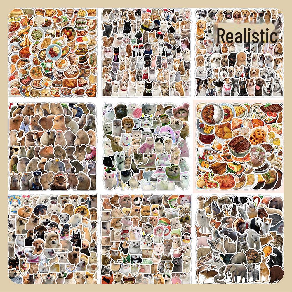 100 realistische Tieraufkleber: Kleines Tier- und Lebensmittelmotiv für Notizbücher, Skateboards, Gepäck – wasserfest