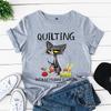 Sommer Kurzarm T-Shirt bedruckt mit Schwarzer Katze Gartenarbeit Lässig Lockeres Oberteil, Modische Reine Baumwoll-T-Shirts Damen