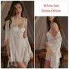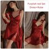 Damen Schlafanzug Set Nachthemd Robe Glattes Satin Camisole Kleid mit BH Cup Sexy Damen Pyjamas