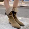 Cowboy Mid-calf Moderne Stiefel Retro Britischer Stil Umgeschlagener Rand Spitzzehe Plissiert Hohe Absätze Schuhe 2024 Mode Herbst Winter