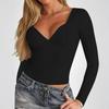 Lässiges, einfarbiges Langarm-Oberteil mit V-Ausschnitt und schmaler Passform für Damen