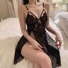 Women Erotic Lingerie Sets Sexy Deep V Backless Strap Slip Dress Thong Porn Mesh Perspective Lounge Comfortable Clothing