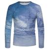 Farbblock 3D-Druck Herren T-Shirts Frühling Sommer Imitation Polyester Locker Rundhals Langarm Casual Tops Übergroßes T-Shirt