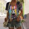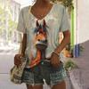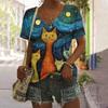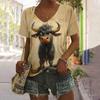 Sommer Damen T-Shirt Wut Katze Print Lässige Kurzarm 3D T-Shirts Streetwear Rundhals Pullover Übergroße weibliche Kleidung