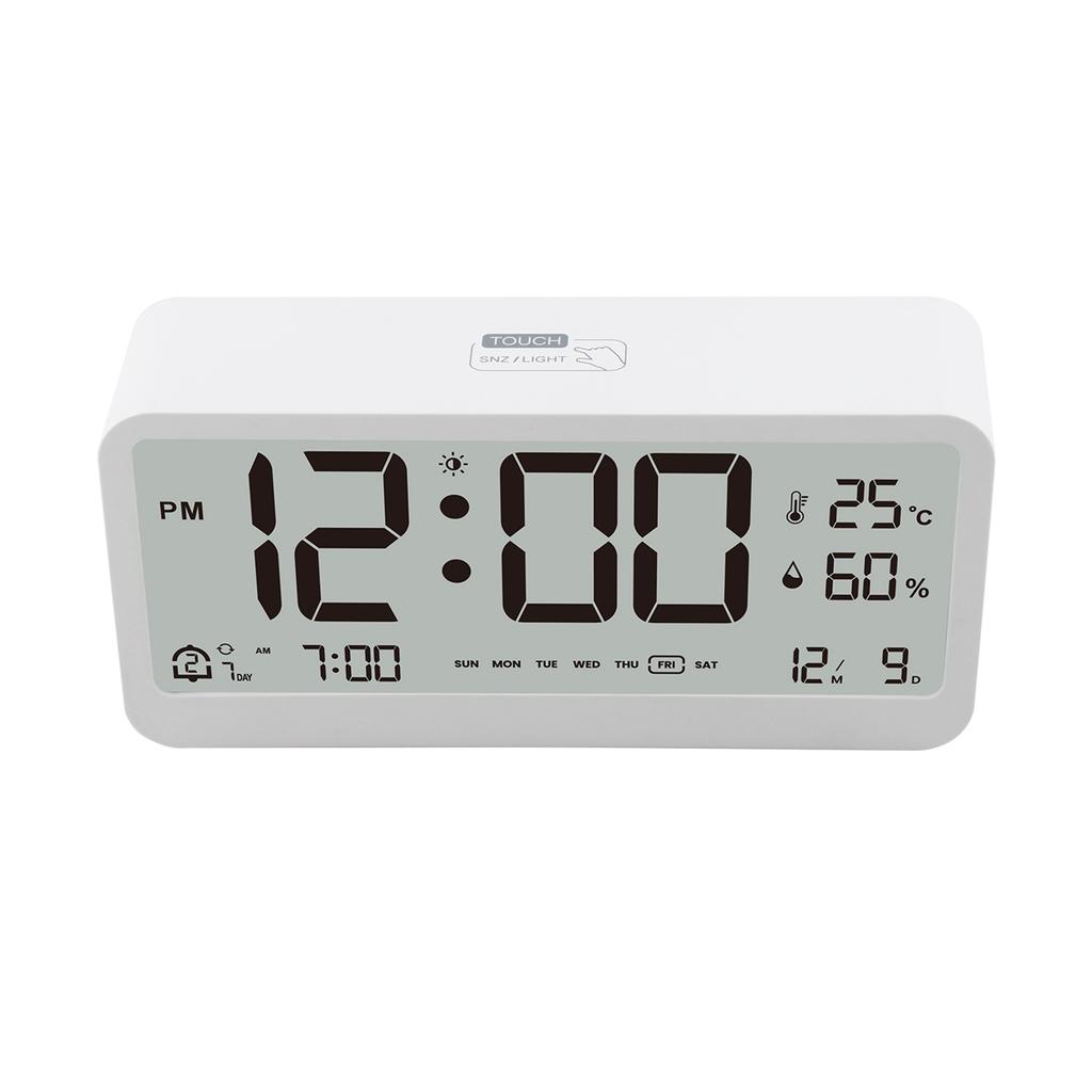 8001-EN Multifunctional Digital Clock LED Brightness Adjustable Temperature Humidity Displaying Alarm Clock with Dual Alarms